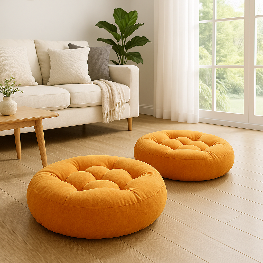 Add warmth and comfort to your space with this Round Orange Floor Cushion (45×45cm). Designed for relaxed seating and modern aesthetics, this floor cushion is made from high-quality, soft yet durable fabric. Its vibrant orange color instantly brightens up any room — perfect for living areas, reading corners, meditation zones, or casual gatherings. With its rounded shape and plush filling, it offers both style and coziness in one.