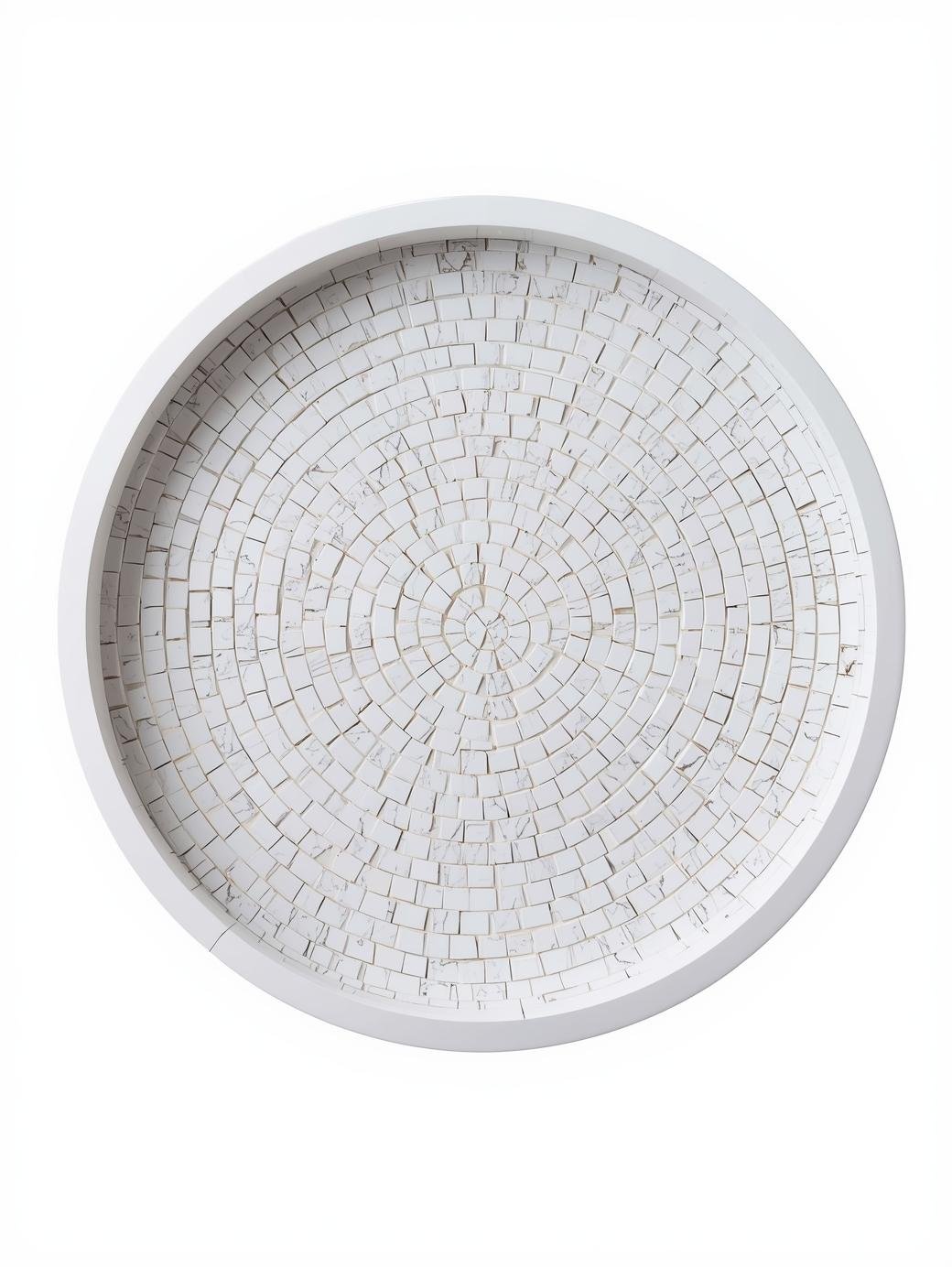 White Mosaic Tray Round 10in.